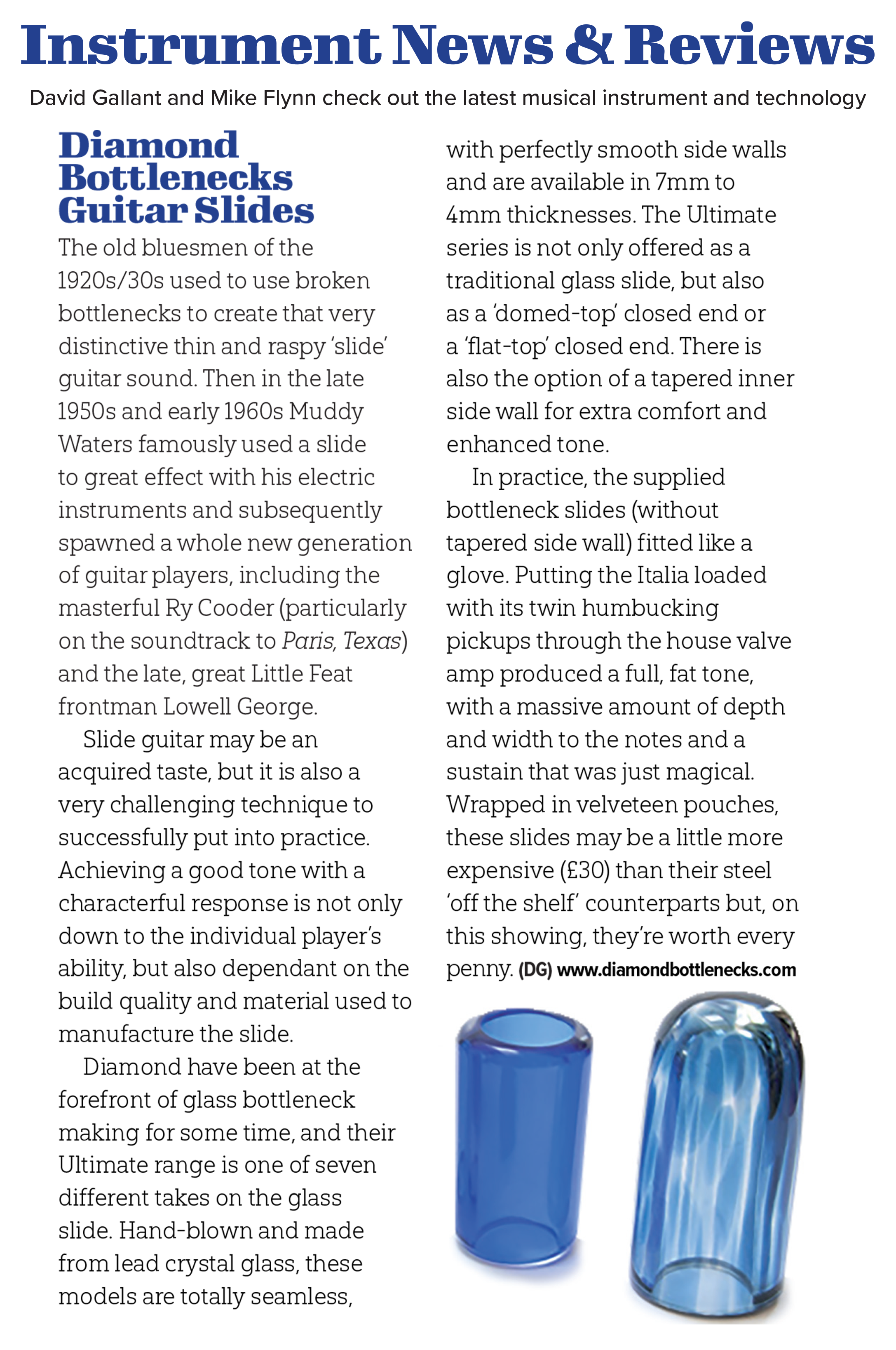 I was very curious about Diamond Bottleneck slides - i have always avoided glass slides because they were too light & wouldn't give me the tone i wanted, so i always used heavy brass.